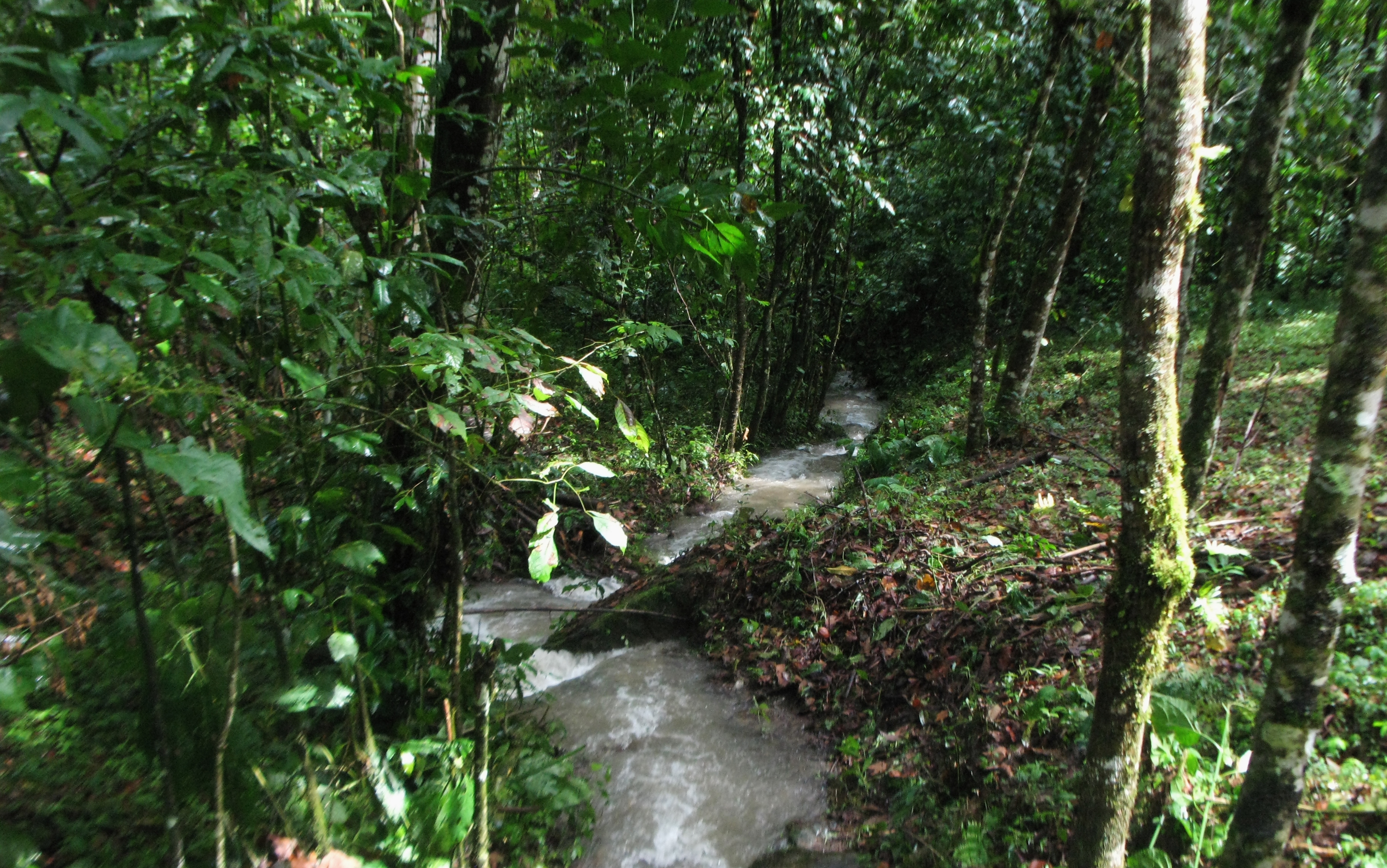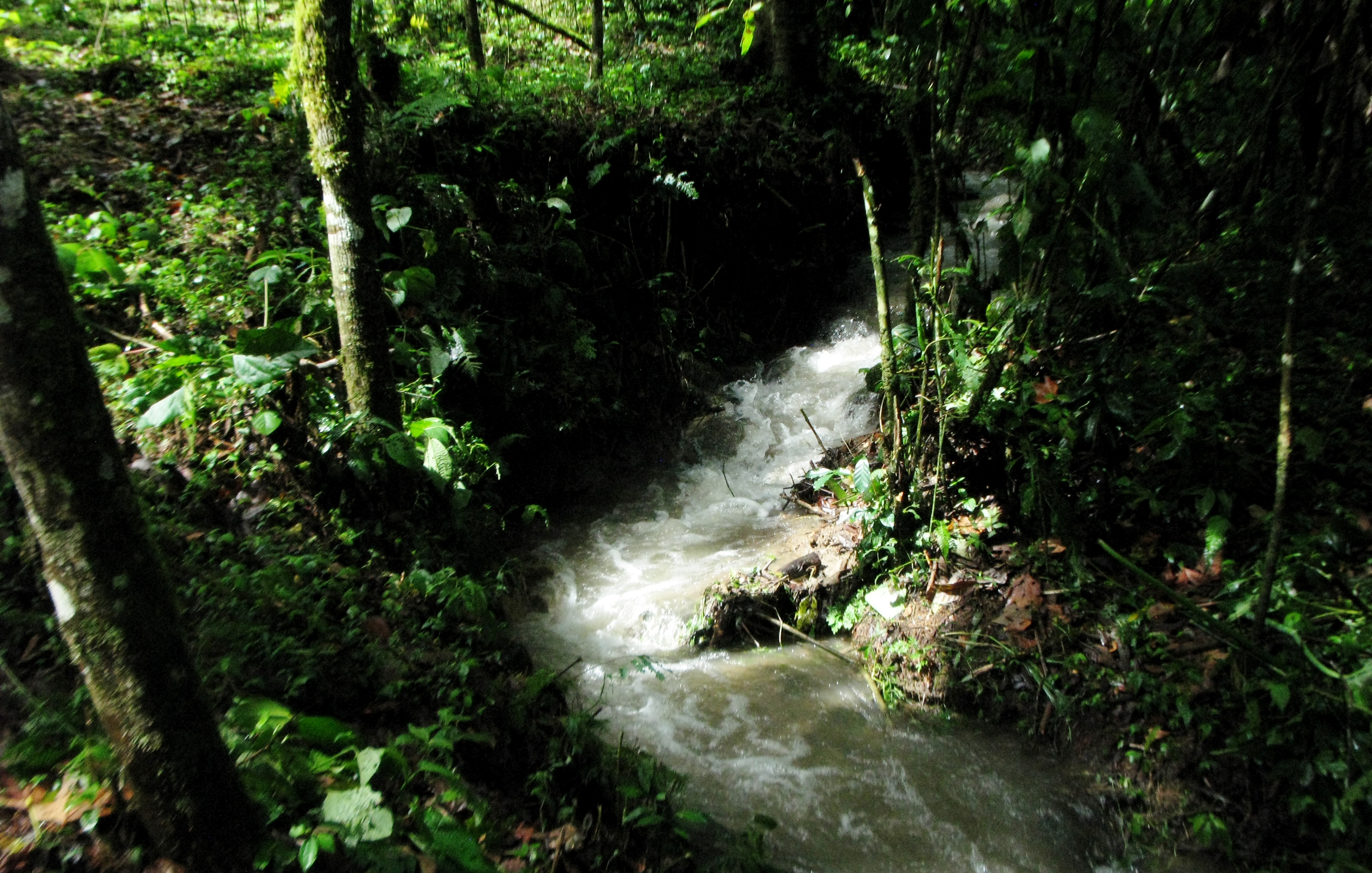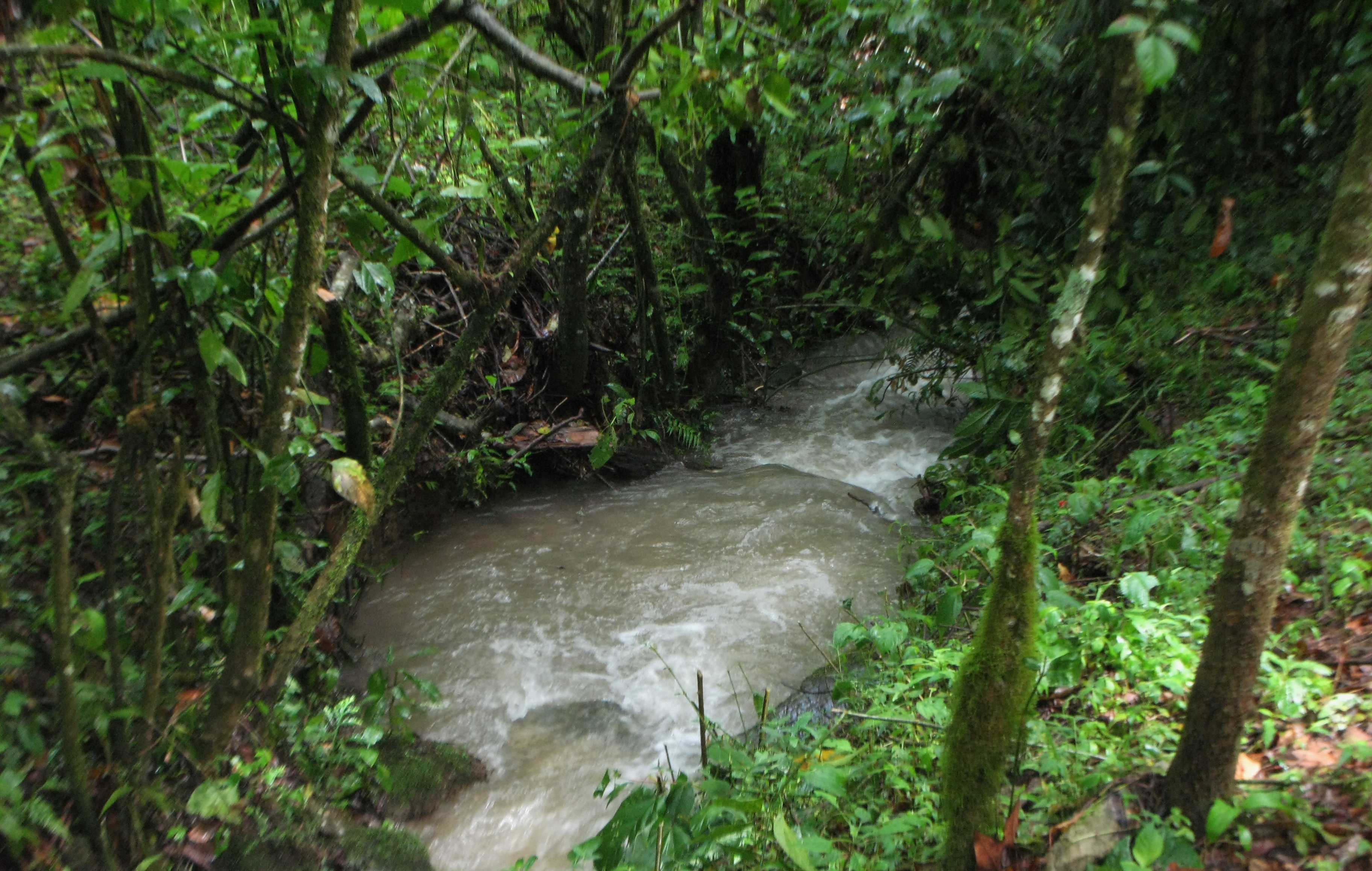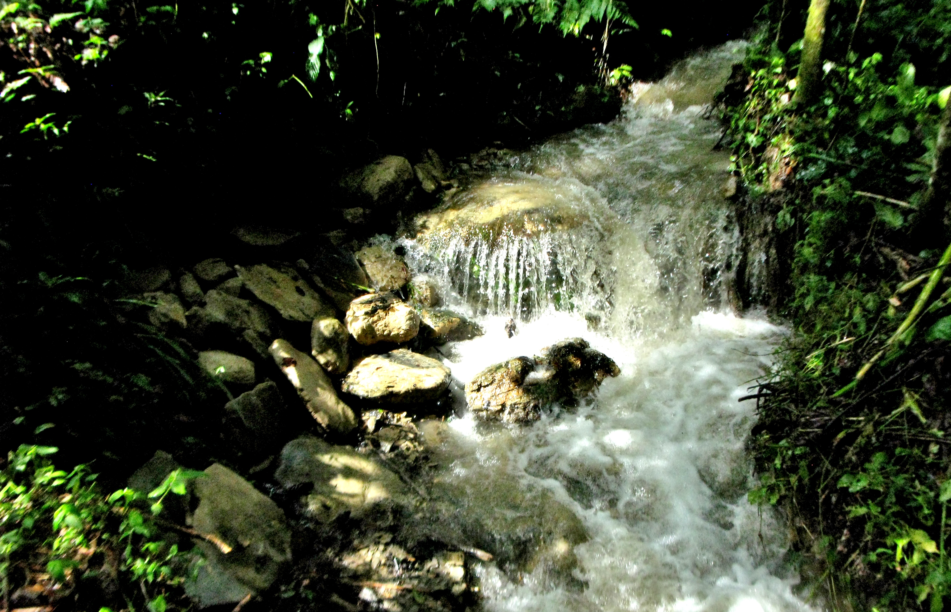 El cielo se había vuelto negro, mientras caía la fuerte lluvia, con la cual el riachuelo volvió a nacer, sin embargo por algunos momentos