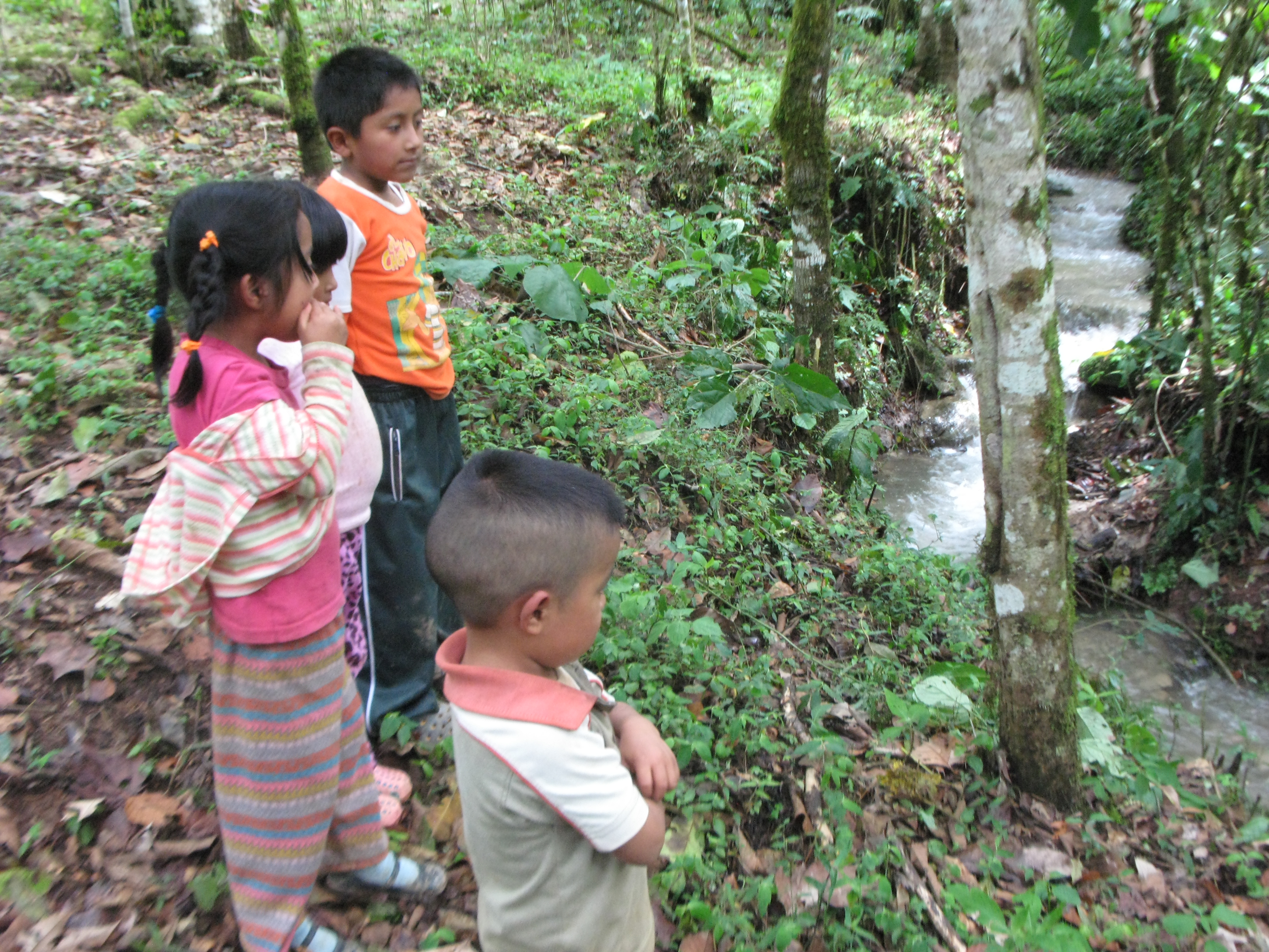 Habíamos salido con los niños, pues la lluvia nos lo había permitido por un rato, a recolectar hojas y a contemplar el riachuelo, pues tienen prohibido acercarse solos, sin embargo estaban muy curiosos para poderlo ver más de cerca, ya que no acababan todavía de