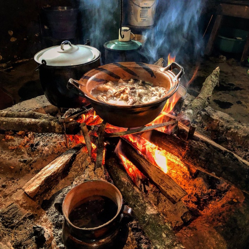 El hambre podía más así que para allá fuimos, estaba en las afueras del pueblo, una enramada con un fogón, en donde una gran olla de barro humeaba y dejaba en el aire un aroma penetrante, se me hacía como si estuviera viajando por el tiempo, pues el ambiente semejaba principio de siglo, las fotos que había visto del México de esa época.