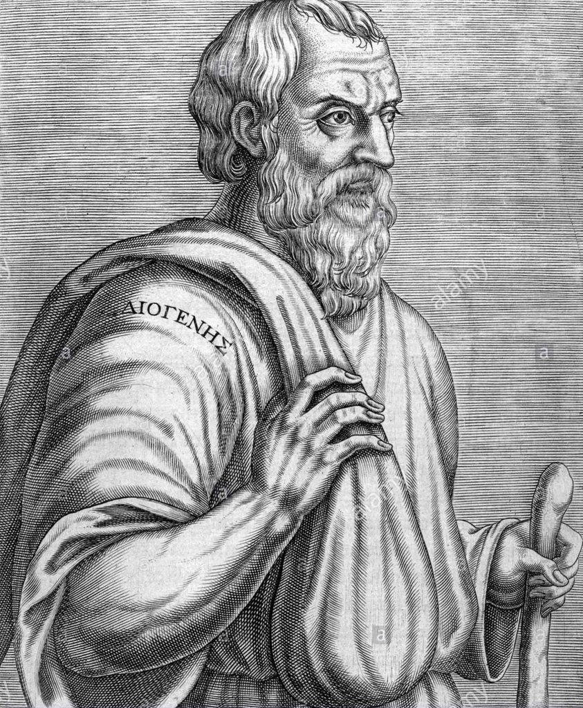 Diógenes de Sínope vivió antes de Cristo, fue el filósofo griego más famoso de la secta cínica, tuvo por maestro a Antístenes que había sido un discípulo de Socrátes, lo que es más según Platón había estado presente durante su muerte, cuando lo obligaron a beber la cicuta y quedó muy impresionado de la manera qué éste se tomó lo acontecido, más allá que no quería morir, sin embargo, utilizó el momento para profundizar sobre el proceso de la entrada a la muerte y la búsqueda del conocimiento.