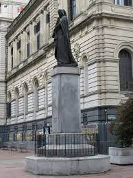 Están en la Avenida 18 de Julio, que es la principal calle de Montevideo, la que nace en el Obelisco en homenaje a los Constituyentes de 1830, realizado por José Luis Zorrilla de San Martín, un pedestal de cuarenta metros de granito rosado que se alza orgulloso y en su base se encuentran tres estatuas de bronce y cada una de ella tiene inscripto Fuerza, Ley y Libertad .