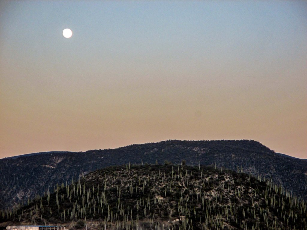 del otro la Luna se asomaba magestuosa, mientras el azul del cielo se iba tiñendo de rosa.