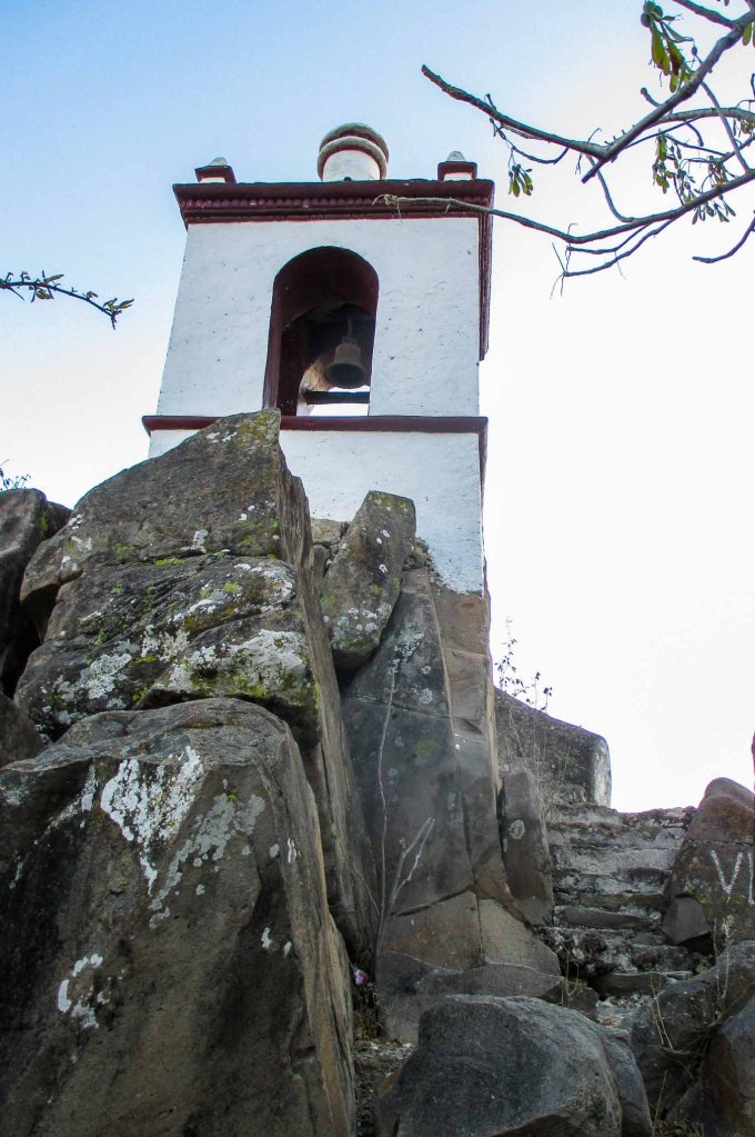 Fui subiendo por las piedras hasta llegar a su escalera, para llegar hasta la campana y ahí me senté.