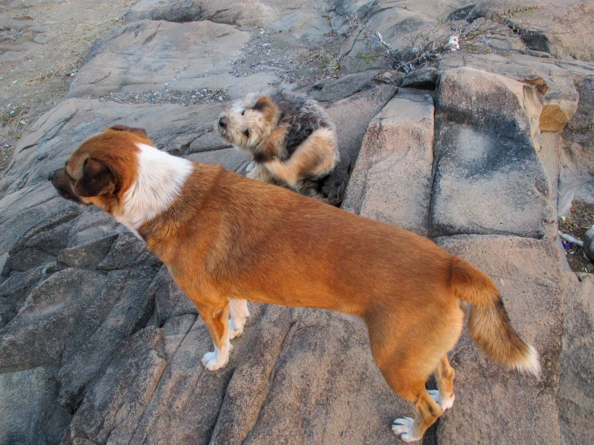 Se quedó a mi lado, cuando algo me hace voltear y ahí me encuentro con el otro, su compañero, su amigo de juegos. Los conocía, siempre andan por la Iglesia como que es su territorio y se juntan unos cuantos y dan la vuelta y se corretean y se acompañan en la calle, pasan el rato.