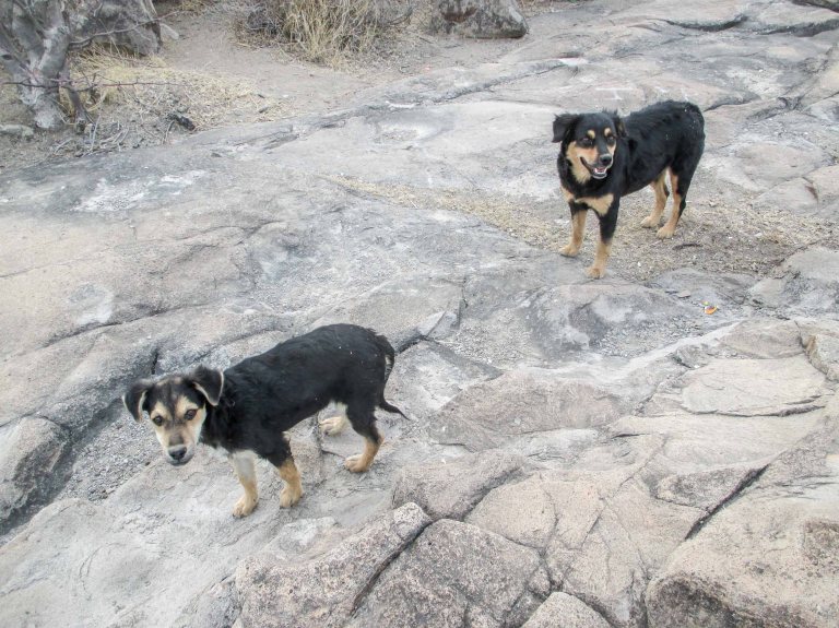 Eran dos perros, la madre con su pequeño hijo, a ella la conocía pues anda generalmente dando vueltas por los alrededores, vive en las cercanías.