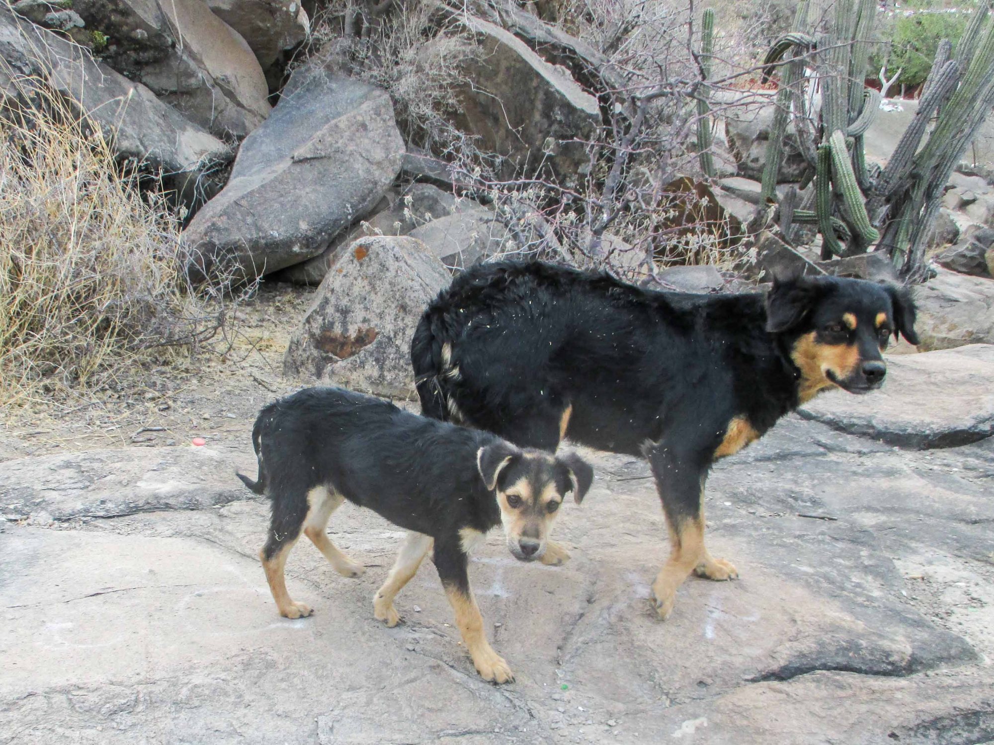 Eran dos perros, la madre con su pequeño hijo, a ella la conocía pues anda generalmente dando vueltas por los alrededores, vive en las cercanías.