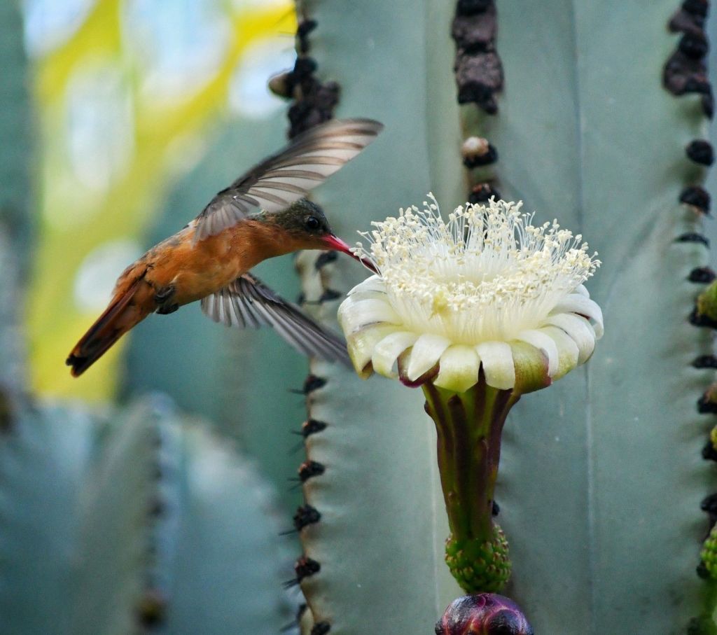 También algunas veces los colibríes en las primeras horas de la mañana se acercan a ellas y mientras liban el néctar para tener un dulce despertar, toman del polen para polinizar.