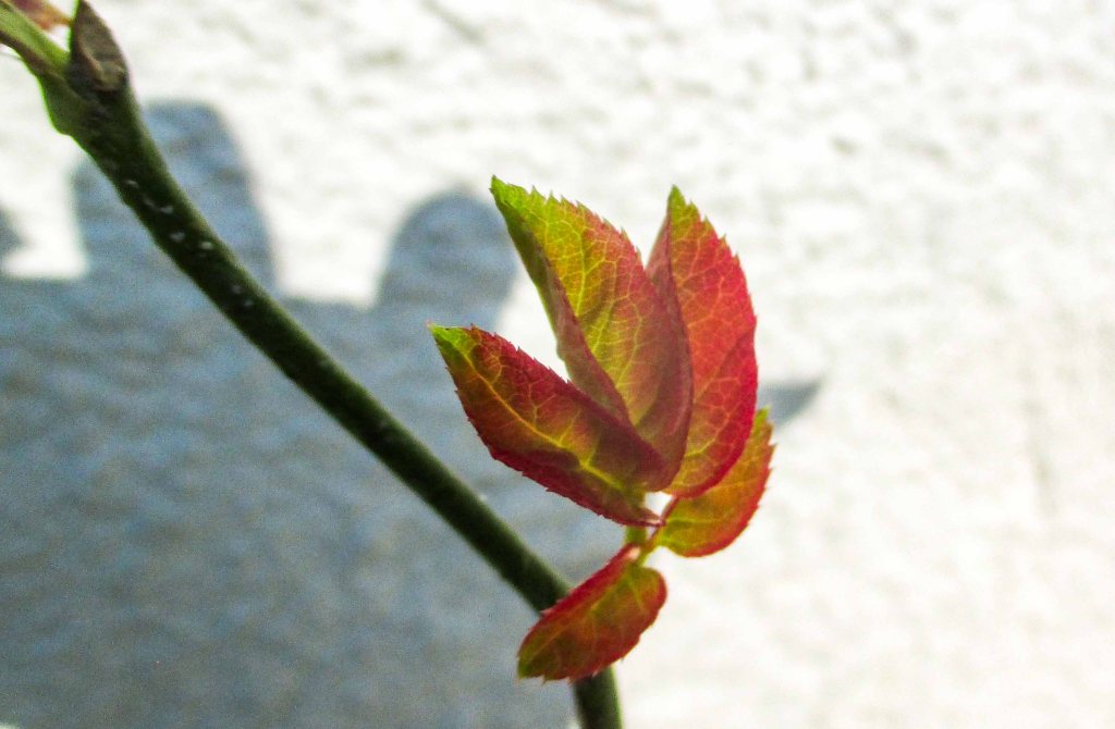 Por otra parte, algo nuevo que me tiene maravillada, el rosal ese ser que vino a embellecer la flora del lugar, parece que le gustó su nuevo espacio y como presente  comenzó a saca una hojita, muy tierna, muy delicada, muy tímida.