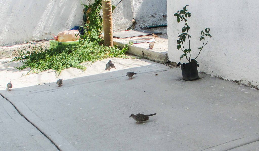 En la anterior entrada les había dicho que el que había regresado era Pluma Café, aquella tortolita que casi en los inicios de este despliegue alado en el patio, se presentó un día, con una gran bravuconería, un poquito antes que aquella horda de «Los Malvados Grises» asolaran el espacio, parecía que él había sido parte de ellos, la vanguardia.