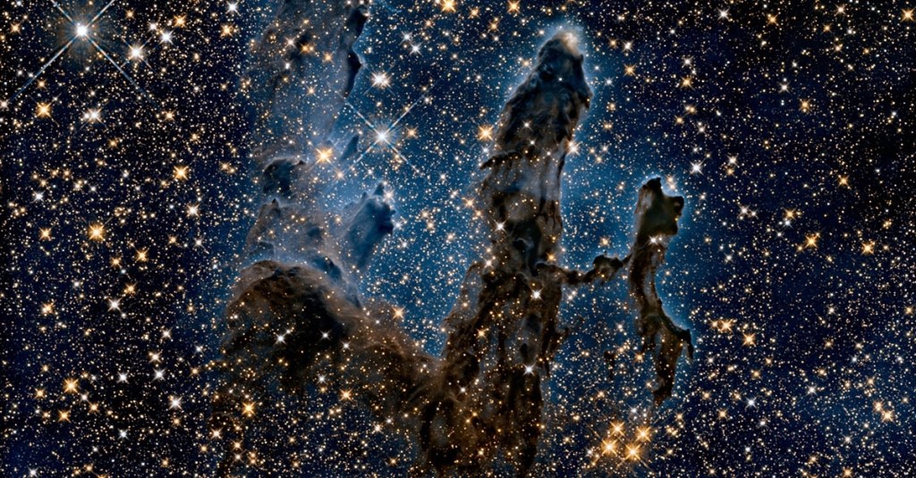 Estas tienen origen en las nebulosas de polvo, esas que son guarderías para todas esas pequeñas que van naciendo y los gases que las conforman se elevan como pilares que se van retrotrayendo a medida que nacen las infantas.