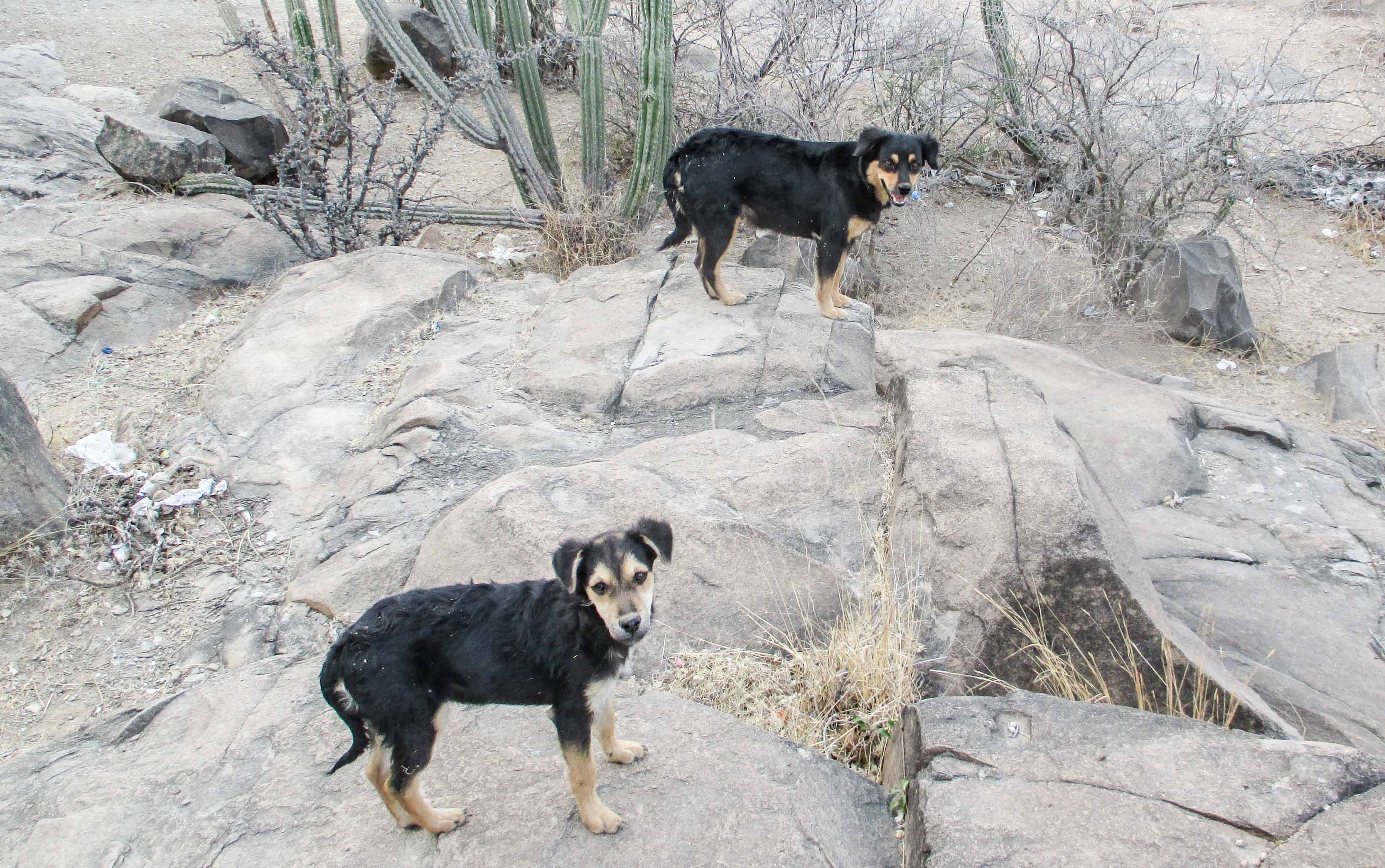 Al llegar al que yo llamo el líder se para y se me acerca, empieza a saltarme, a saludarme, quiere que lo acaricie, mientras el negro llega y también se pone delante de donde iba, quería que lo viera.