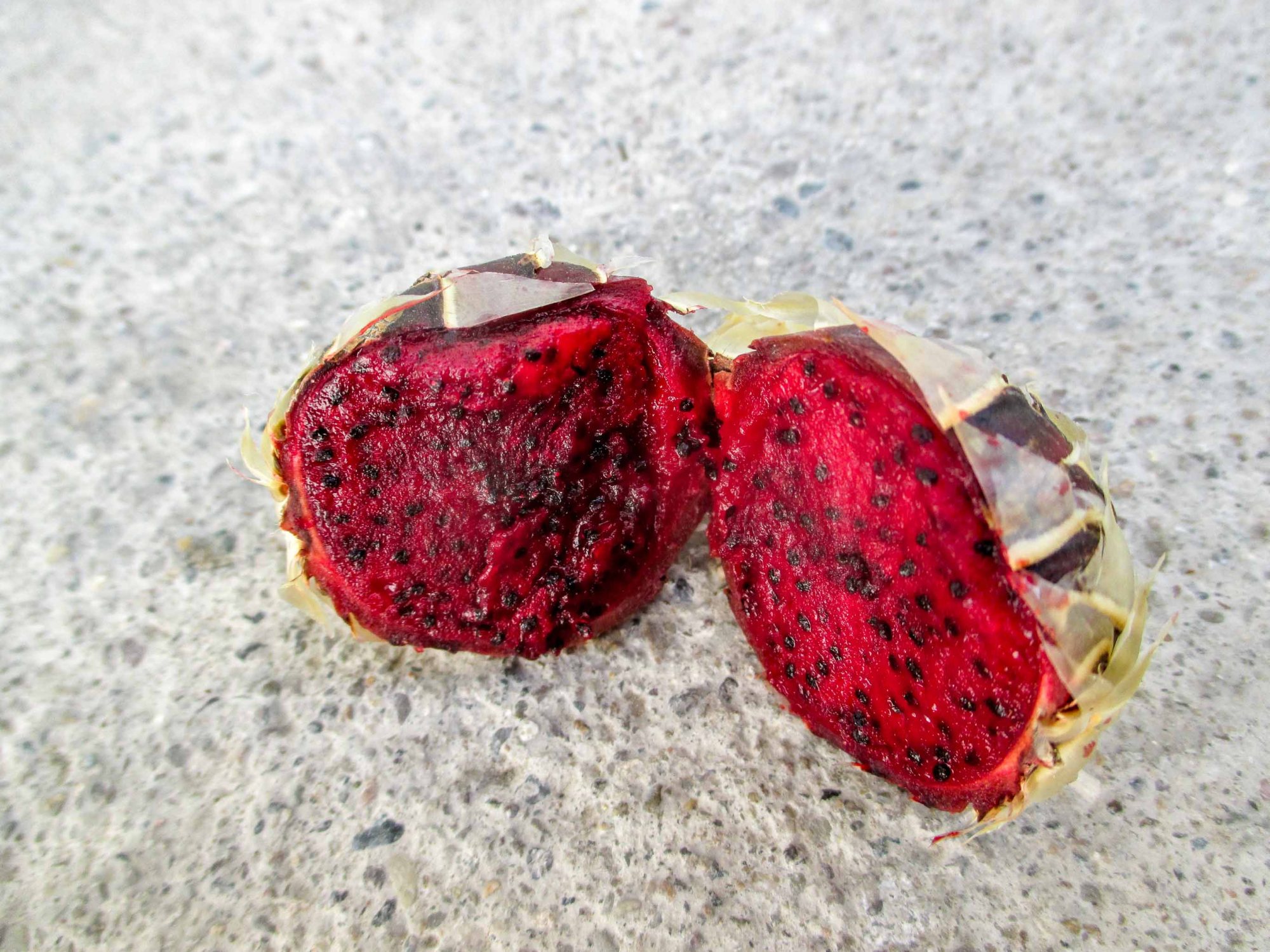 Nació ahí, sola, ni siquiera reclama agua, fruto silvestre que aparece en las puntas de los cactus, con un aspecto que no llama mucho la atención, pues la belleza la lleva por dentro.