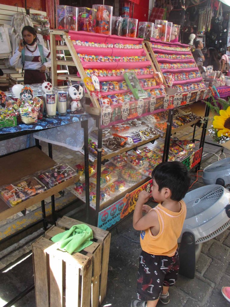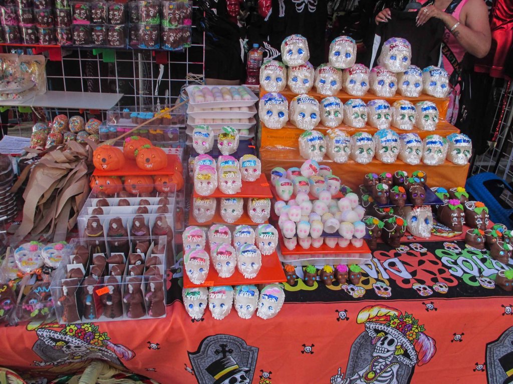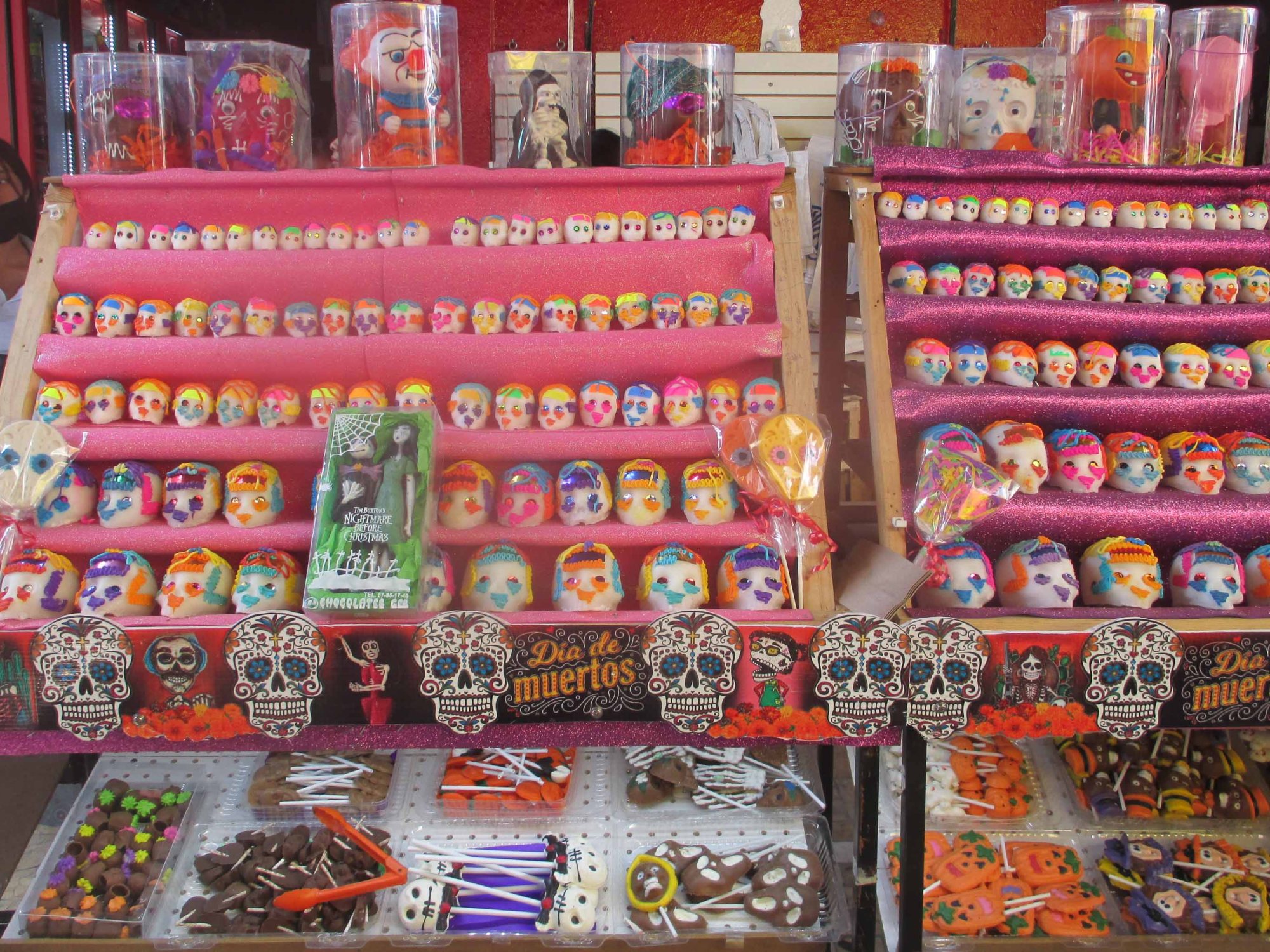 El mercado sin embargo, estaba lleno de lugares en donde se vendían, las calaveritas de dulces, tan típicas de esta época, ya fueran de azúcar o de chocolate.
