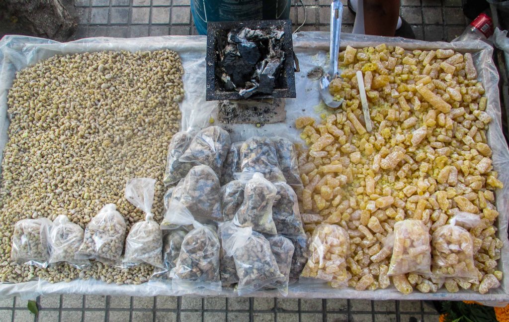 Fui caminando hacia él y un pequeño anafre que humeaba rodeado de mucho copal, esa resina embriagante ahí estaba, en un puestito callejero que en estos momentos abundan pues es un día para aprovechar, dos muchachas lo estaban vendiendo y en cuanto me vieron con la cámara se agacharon.