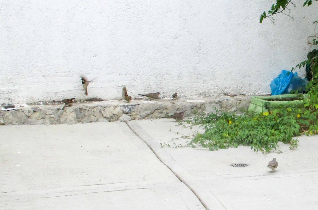 La vida se recrea en este patio que cada día se está engalanando más, unos se han ido, otros regresan y otros en su primera vez, miran todo con cierta extrañeza, tal vez, dilucidando si se van a quedar o se van o de qué se trata este ecosistema de cemento, tan característico de las ciudades y que se expande a los pueblos como modelo, que no queda de otra que ir tratando de acomodarse en él, pues por lo que se ve llegó para quedarse, por lo menos por el momento.