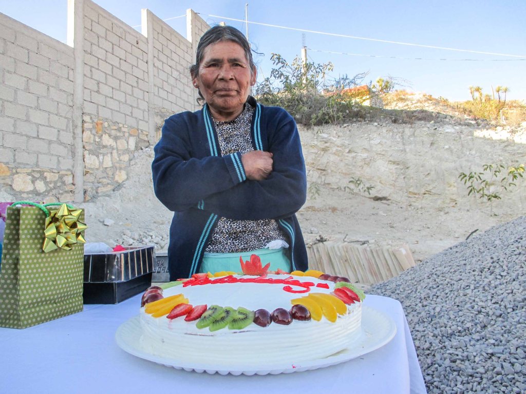 Se le cantaron «Las Mañanitas» como es usual en México, ella parada muy seria, con sus brazos cruzados, pues como me contaba un día, cuando la ponen frente y todos la miran se siente mal, pues no está acostumbrada a que sea a ella que homenajeen, como le sucedió el día que le dieron el premio nacional por su relato y después le hicieron muchas entrevistas y flashes y cámaras de filmación. Eso sí, sus ojos con su mirada mostraban lo feliz que estaba.