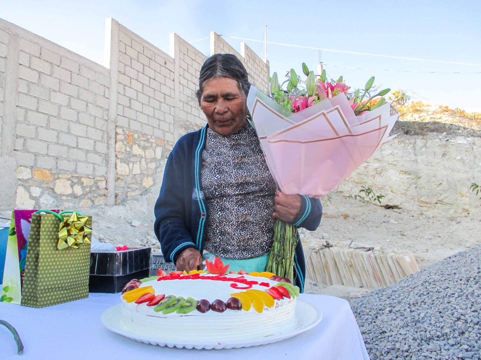 Se le cantaron «Las Mañanitas» como es usual en México, ella parada muy seria, con sus brazos cruzados, pues como me contaba un día, cuando la ponen frente y todos la miran se siente mal, pues no está acostumbrada a que sea a ella que homenajeen, como le sucedió el día que le dieron el premio nacional por su relato y después le hicieron muchas entrevistas y flashes y cámaras de filmación. Eso sí, sus ojos con su mirada mostraban lo feliz que estaba.