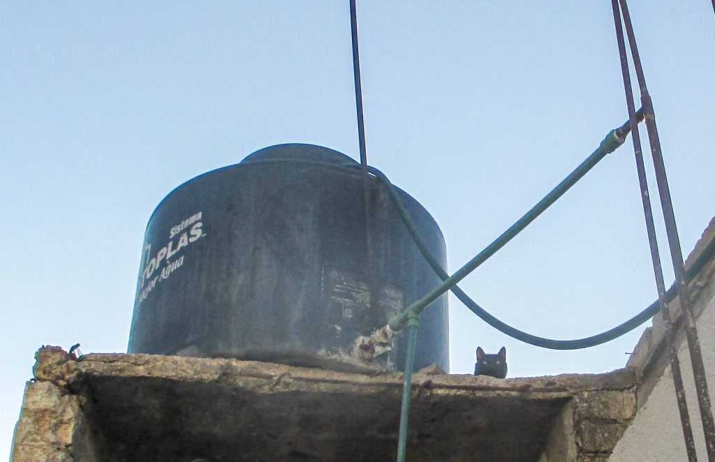 Me levanté y me llamó la atención que al lado del tinaco estaba el Negrito escondido, de repente se asomaba, de repente se ocultaba, me quedé un rato jugando con él, también me desaparecía y aparecía.