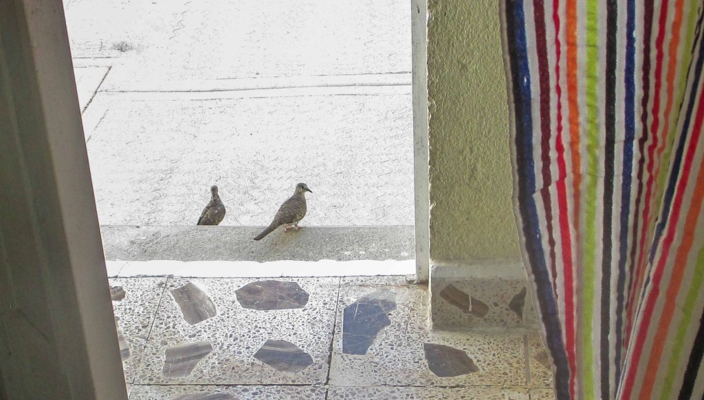 A veces se cambian de un lugar a otro, eso sí no se mueven, han aprendido que en este patio hay comida, los padres se lo han enseñado, es un lugar simple para alimentarlos.