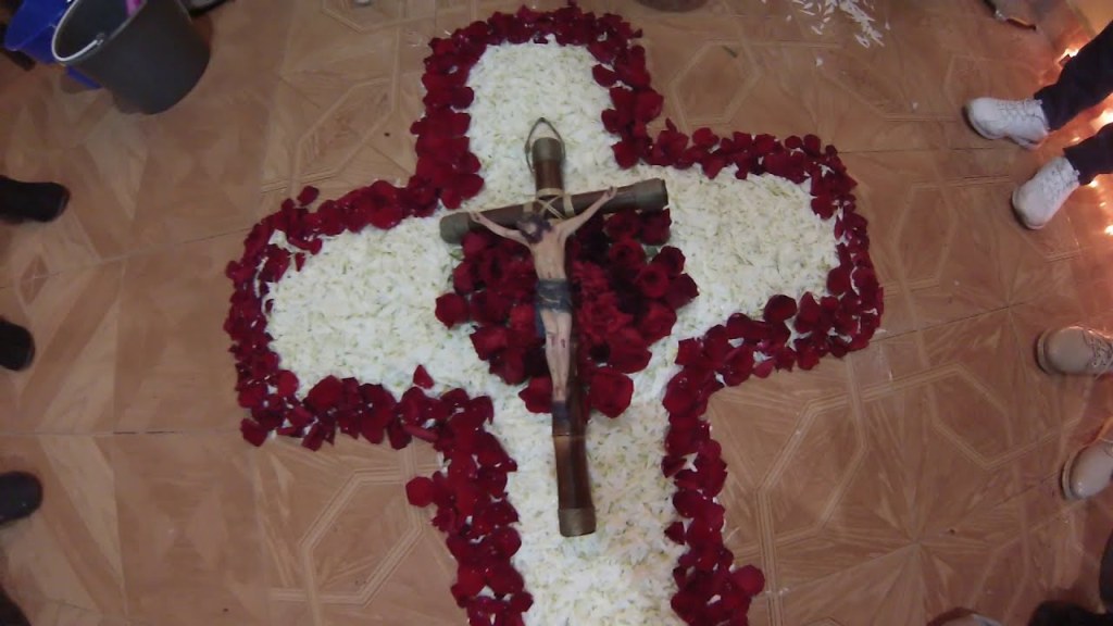 FOTO TOMADA DE INTERNET. CRUZ DE CAL Y PETALOS