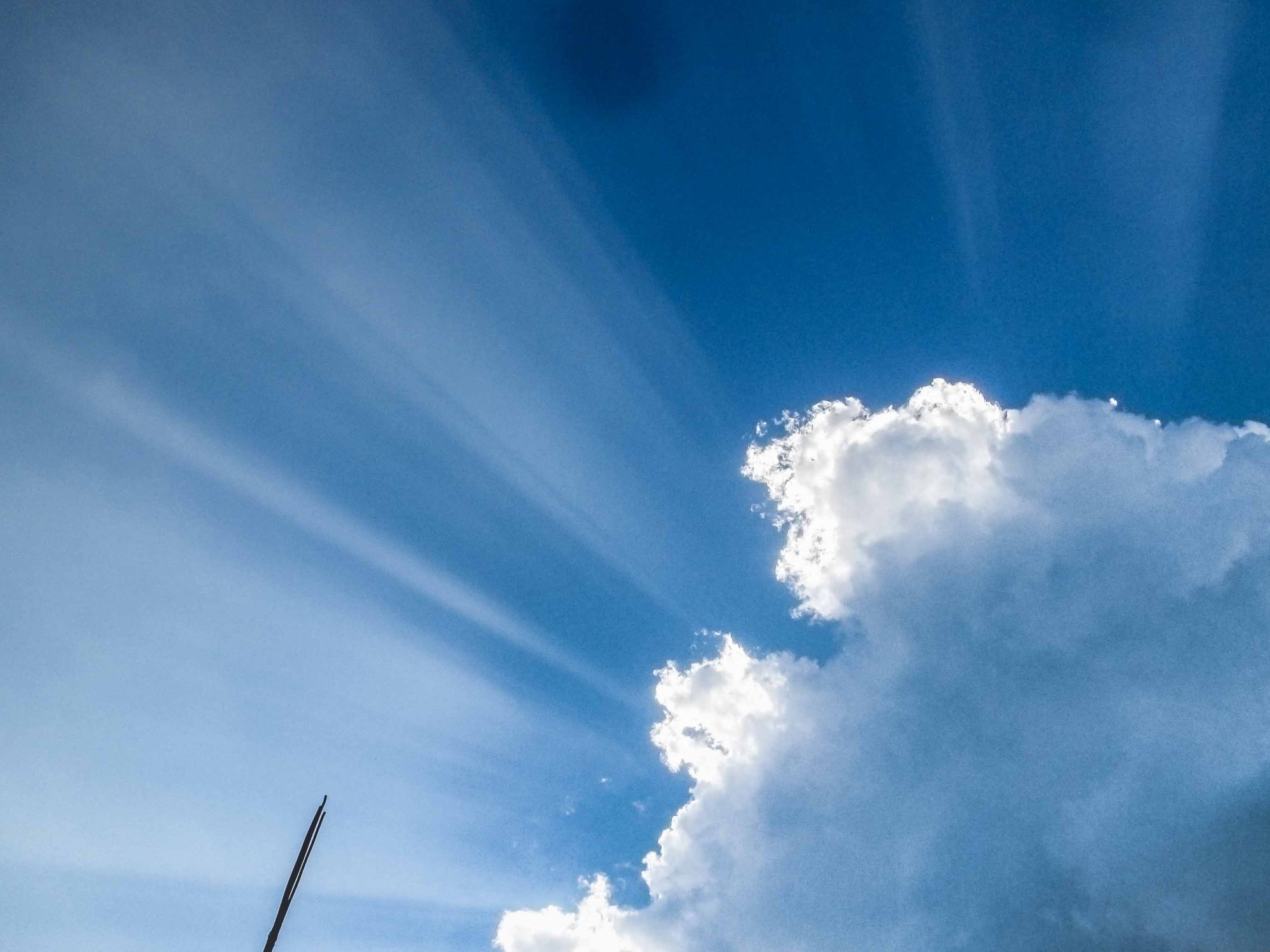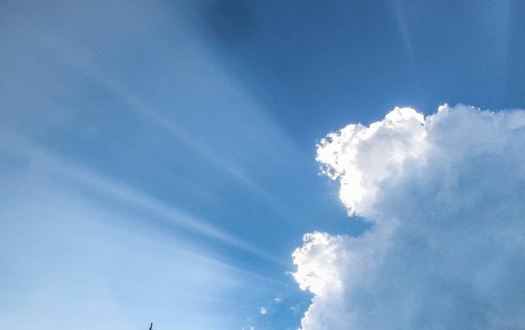 Se coronó de nubes blancas, muy blancas y de adentro de ellas brotaron los más hermosos rayos crepusculares, esa escalera hacia él, esos rayos de Dios o sus dedos, maravillosa visión, que nos señalaba que en las alturas se encuentra la gran cocina de todos los eventos, un regalo imprevisible para cerrar el día.
