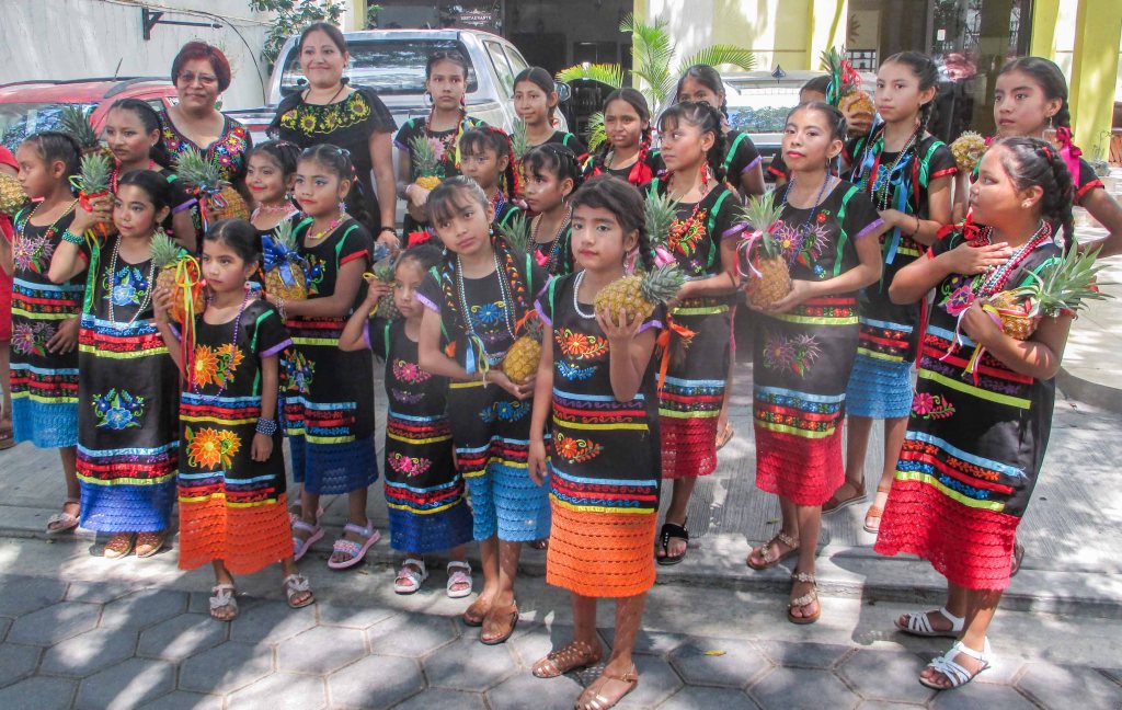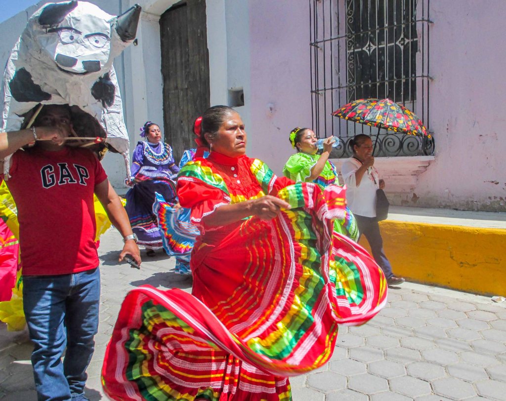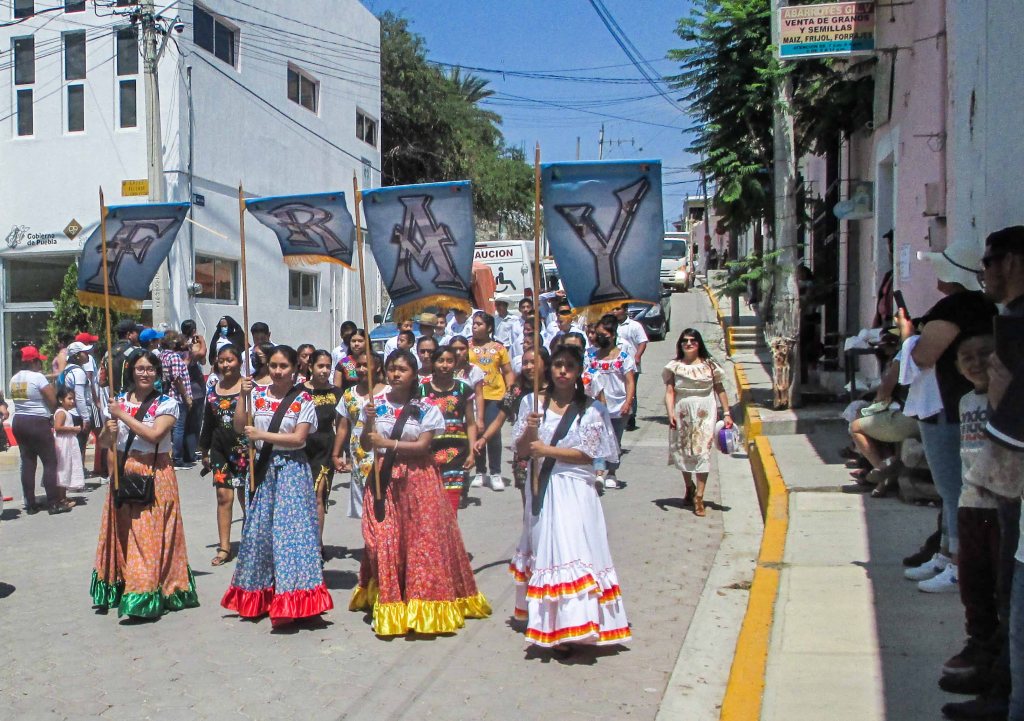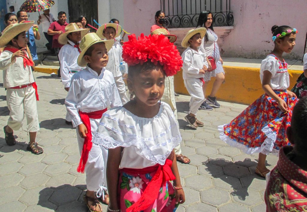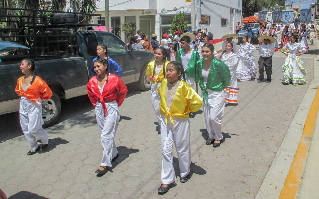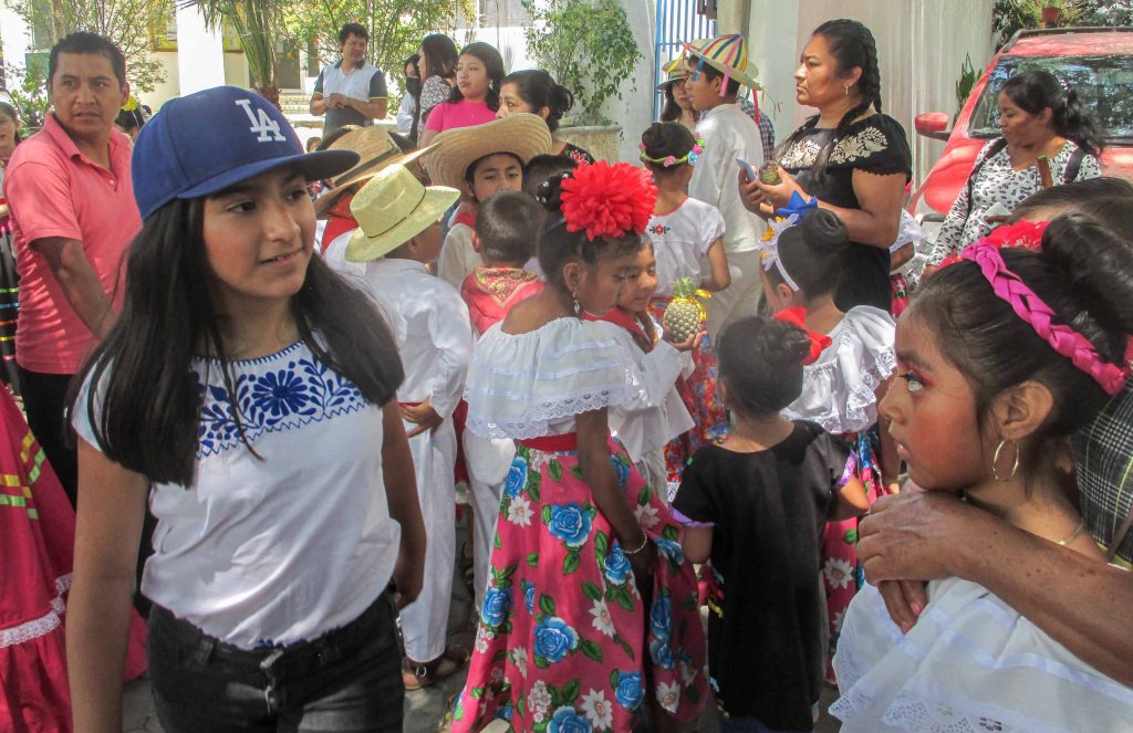 Niños, adolescentes, adultos, eran parte de ella, regalaban el colorido, la música, el baile, habían venido caminando desde lejos por toda la carretera bajo ese sol de verano que lanzaba sus rayos sobre ellos, sin embargo no desfallecían, todavía regalaban sonrisas y se preparaban para al rato dar a todos aquellos que los estaban esperando, un espectáculo de diferentes bailes folklóricos de México.