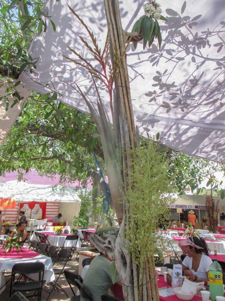 Luego cuando el hambre solicite una comida más exuberante, volcarse a uno de esos platillos estrellas de la ocasión y que muchos fuereños llegan a probarlos, a conocerlos o a repetirlos si ya los han saboreado y para ello está el espacio de restaurantes creados dentro de la plaza, entre los árboles, decorados muy hermosos con el esqueleto de esos cactus, plantas y flores del desierto.
