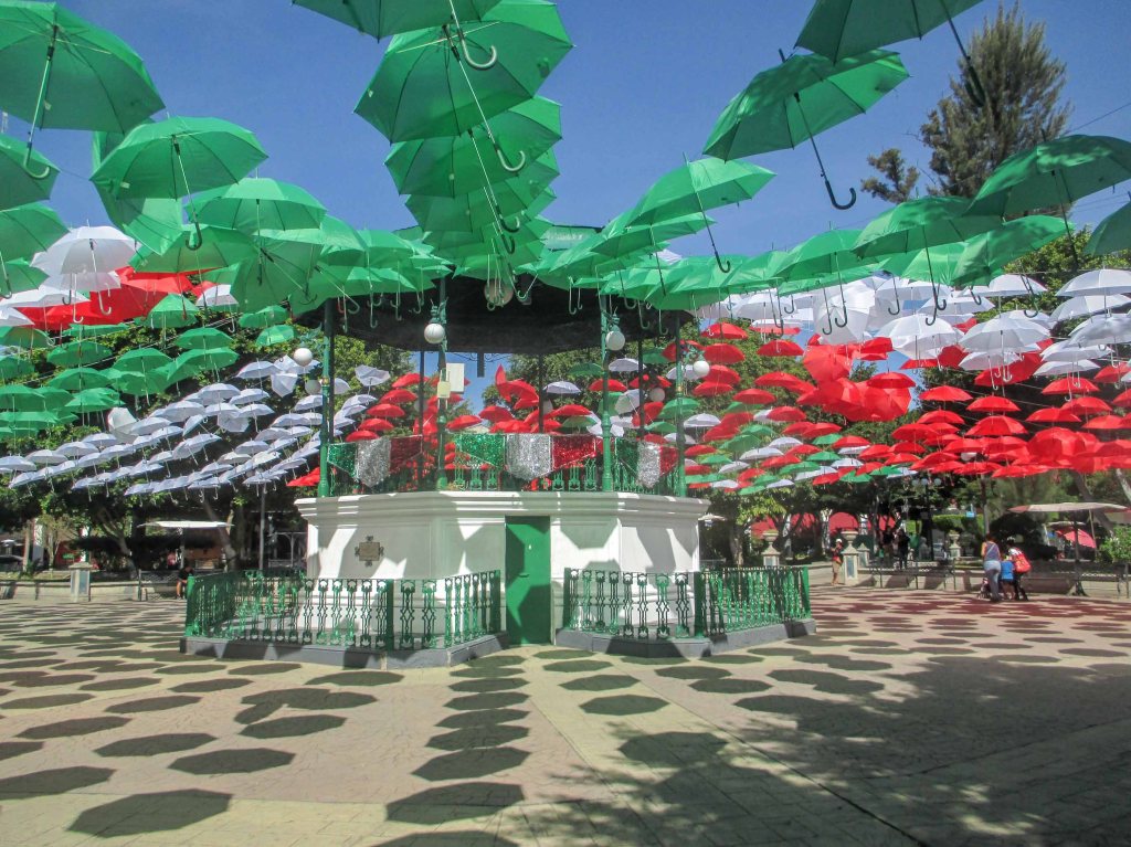 Había ido a Tehuacán y ya estaba el Parque hermosamente adornado, daba gusto caminar por él. Los paraguas engalanaban y hacían de techo, desde lejos se veían, acompañados de luces por todas partes que en la noche se encenderían y darían un espacio mágico para pasear por él, saborear la brisa que se siente al anochecer, cuando el aire regala esa suerte de movimiento que refresca y da un respiro a una ciudad encerrada.