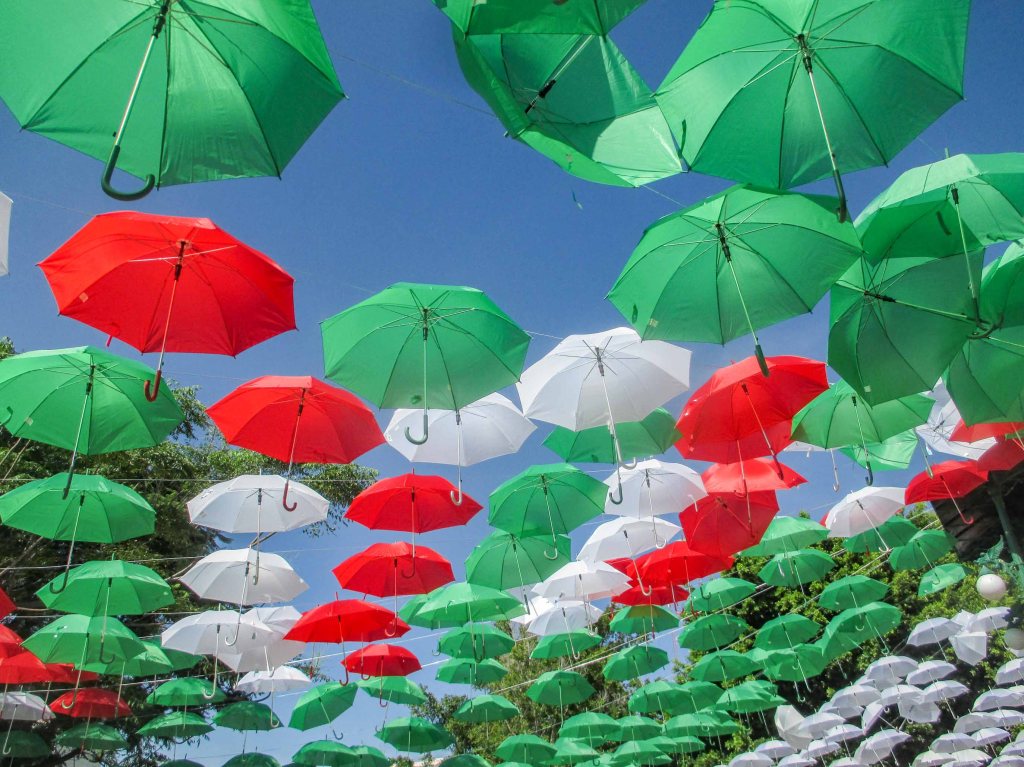 ¡Hola, Themis! Viva México. Qué bonita toda la decoración y, como dices, tu sombra y tú entre los paraguas.