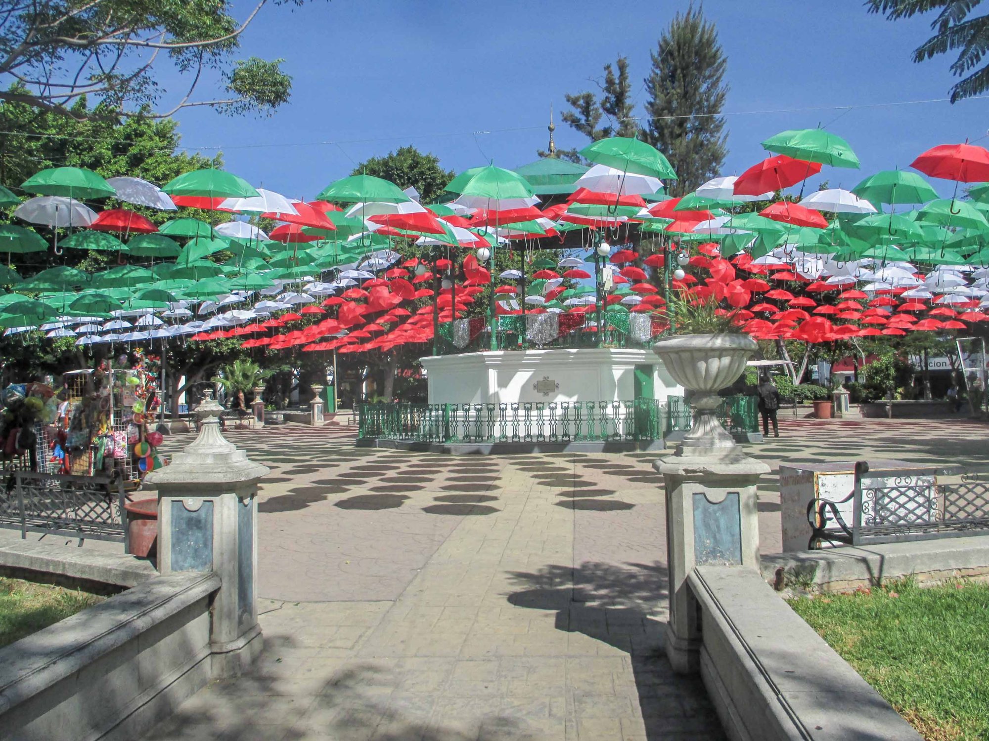 Había ido a Tehuacán y ya estaba el Parque hermosamente adornado, daba gusto caminar por él. Los paraguas engalanaban y hacían de techo, desde lejos se veían, acompañados de luces por todas partes que en la noche se encenderían y darían un espacio mágico para pasear por él, saborear la brisa que se siente al anochecer, cuando el aire regala esa suerte de movimiento que refresca y da un respiro a una ciudad encerrada.