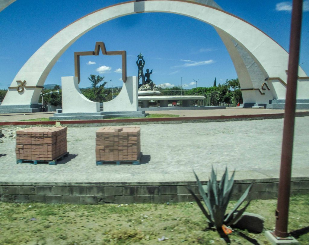 Muy pocas personas viajaban, el autobús iba casi vacío, de repente los Arcos de ese monumento a la Identidad, que tiene una cantidad de simbolismos en él, ellos encarnan al arco iris, donde de acuerdo a una leyenda en sus extremos se encuentra la prosperidad,  rodeado de un jardín de cactáceas sin lugar a dudas la vegetación que caracteriza a la región y la vuelve única, las figuras humanas, los dones primigenios, el hombre elevando el maíz el sustento de todos los pueblos que lo habitaron y lo domesticaron desde el inicio y la mujer que en sus manos tiene el agua, símbolo de la fertilidad.
