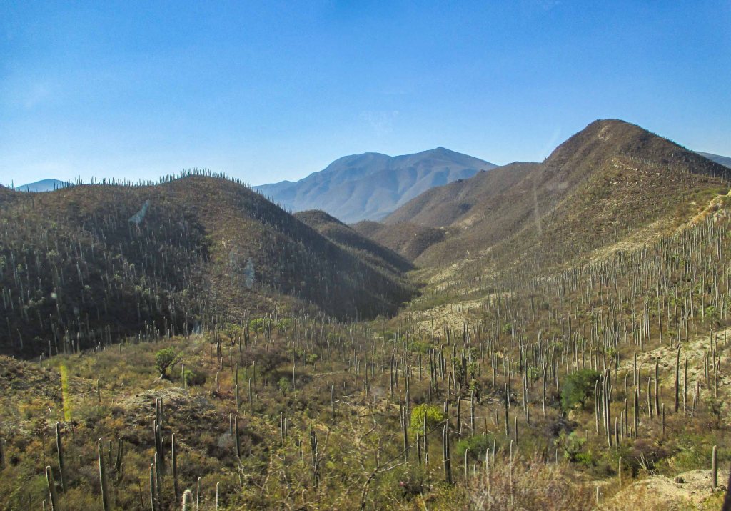 Allá fuimos recorriendo ese camino que nos lleva a introducirnos en esos bosques de los cactus columnares, de las montañas repletas de ellos que se van extendiendo en la lontananza.
