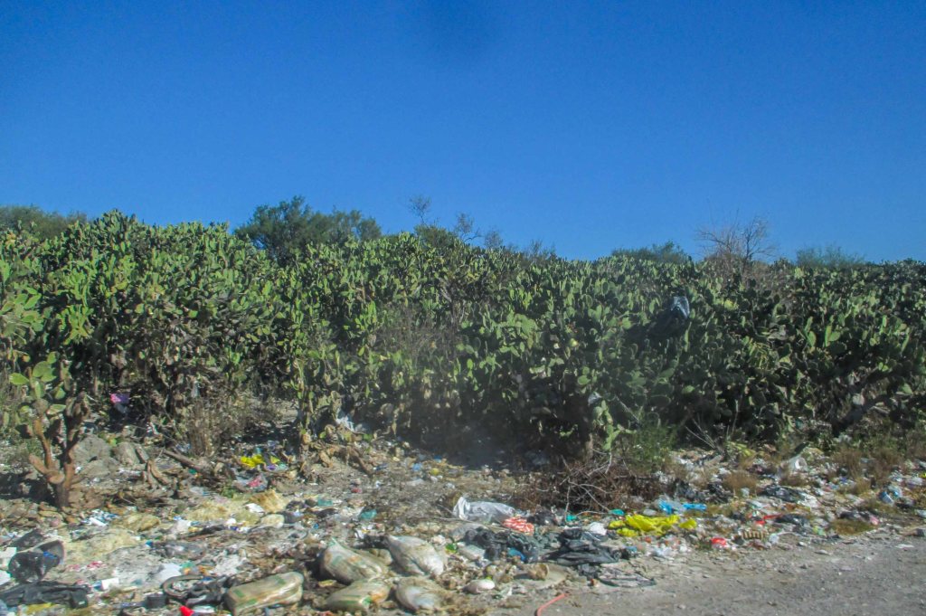 Eso sí, las nopaleras que empezaban a aparecer a la vera del camino haciéndose cada vez más notorias, al igual que la basura que las rodeaba, cosas «extrañas» que tiene el ser humano donde no mira más que su necesidad inmediata, como es el deshacerse de ella y con buen tino crea los rellenos sanitarios dentro de ese paisaje o mejor llamarlos basureros o lo que es más desde los autos en lo individual van tirando sus bolsas de deshechos y cosa que me sorprende, donde hay una bolsa, ahí mero, se empiezan a acumular, como si el hecho de que alguien lo hubiera realizado antes los exime de culpas.