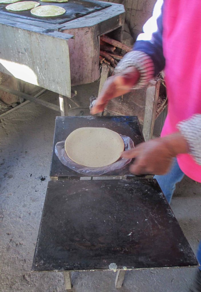 Llevarla al comal calientito por el fuego, depositarla en él, esperar que se cueza de un lado, para darla vuelta y luego sacarla.