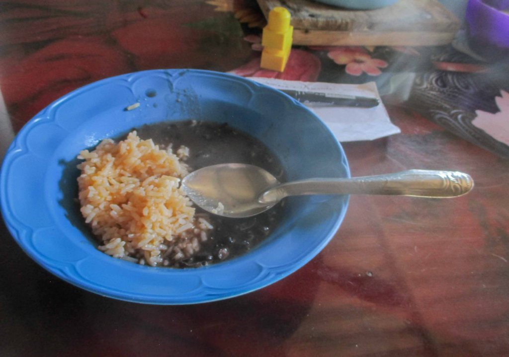 Apareció con ello el arroz y los frijolitos para empezar a llevar el sagrado alimento a ese cuerpo que se relamía por dentro para saborearlos y del hambre que había despertado el diferente conjunto de aromas.