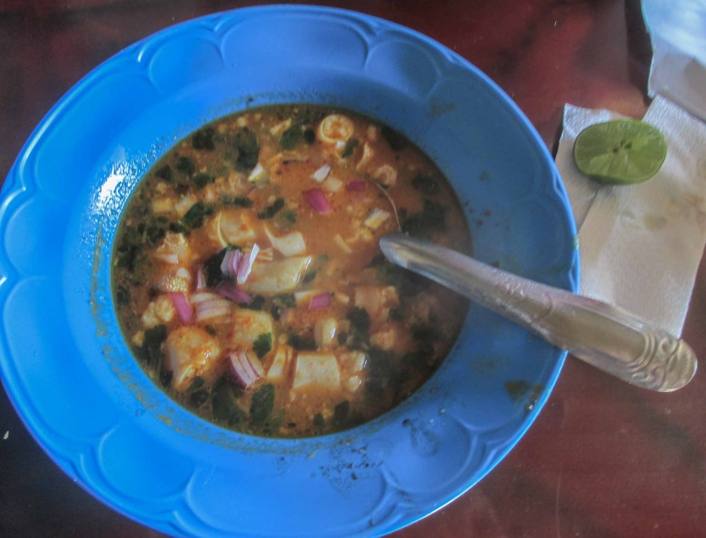 Resulta que se había matado un chivo y todo se utiliza, como me contaban, días y días se va comiendo de él, primero fue el platillo emblemático el Mole de Cadera, para luego con las diferentes partes ir haciendo otras comidas y ese día había llegado la hora de su estómago.