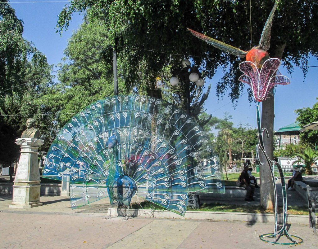 Seguí mi camino, pasé por el Palacio Municipal lleno de sus murales que cuentan la historia y frente a su puerta un gran corazón lleno de tapitas para alguna campaña de recolección.