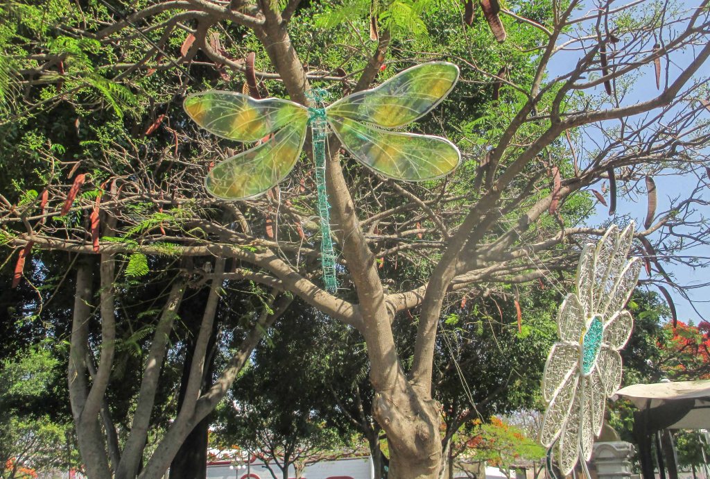 Flores, mariposas, libélulas, colibríes revoloteaban en el cielo y un gran pavorreal con sus alas abiertas desplegando su encanto y su magia, nos recibía.