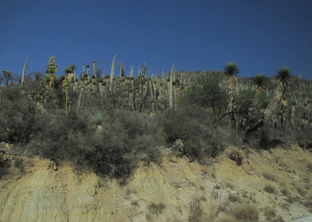 Al ir lentos por el camino, podía contemplar con más tranquilidad a esos cactus largos, que parecían seres que caminaban en una peregrinación hacia el Norte o Noroeste.