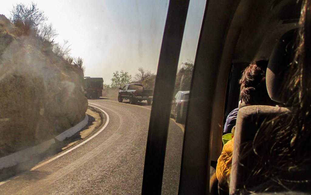 Íbamos por la carretera a vuelta de rueda pues un pesado camión llevaba a una gran fila en una marcha lenta, nadie podía osar pasarlo pues también del otro lado había tráfico y era el espacio en donde más curvas se encuentran.