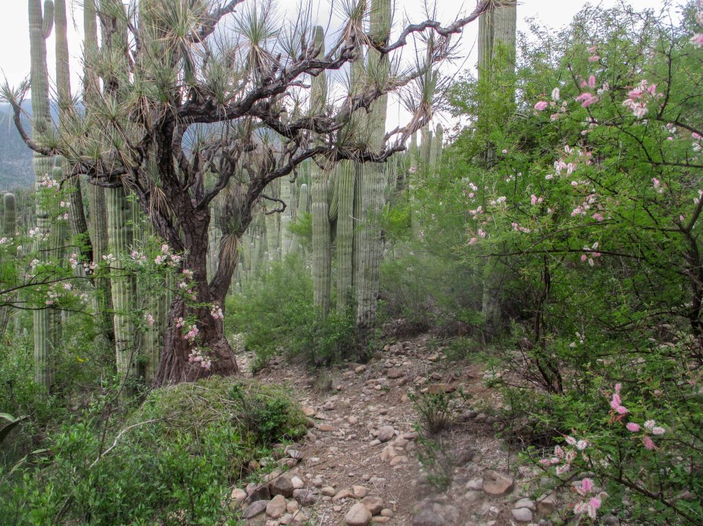 Abrían el sendero arcos formados por flores de diferentes colores, que a cada tanto se aparecían para robustecer aún más la entrada a ese mundo de fantasías, regalos de la vida que se exponía que puede llevarnos a ver milagros, un desierto que bullía con su energía restablecida, que revelaba los tesoros escondidos, nutridos mientras se aguardaba el día para mostrarlos a aquellos que se atrevían a salir a encontrarlos.