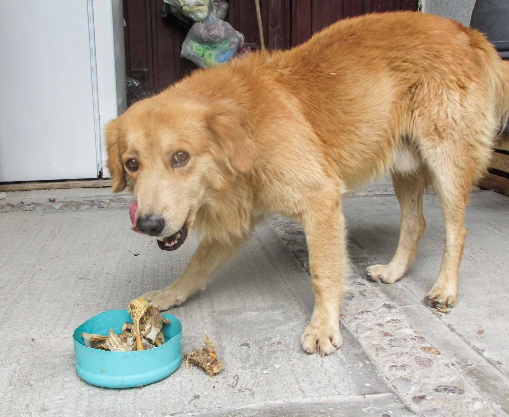 Le fui guardando comida, pues siempre anda medio escaso de ella y con un hambre voraz, aunque no está flaco, nos fuimos acostumbrando a vernos, a que cada vez que le digo que si quiere huesitos, mueva la cola, se pare y camine a donde se le pone la comida.