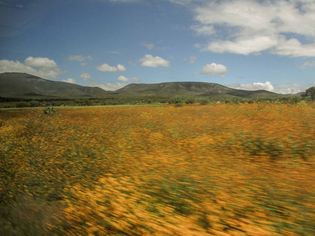 Ya la salida me iba mostrando que todo el desierto, los campos en la carretera, se habían vestido de amarillo, como si la naturaleza sabia supiera de este día tan festejado y aguardado pues no deja de ser el momento de reencuentro entre los que estamos y los que se fueron.