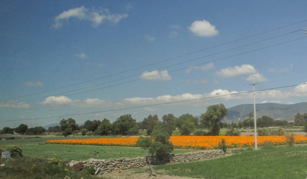 Iba por la carretera, cuando de repente, ahí apareció el primer campo sembrado de ellas, ese color inconfundible, que anuncia que Día de Muertos ya está cerca, que te prepares para festejarlo pues faltan pocos días para la cosecha.