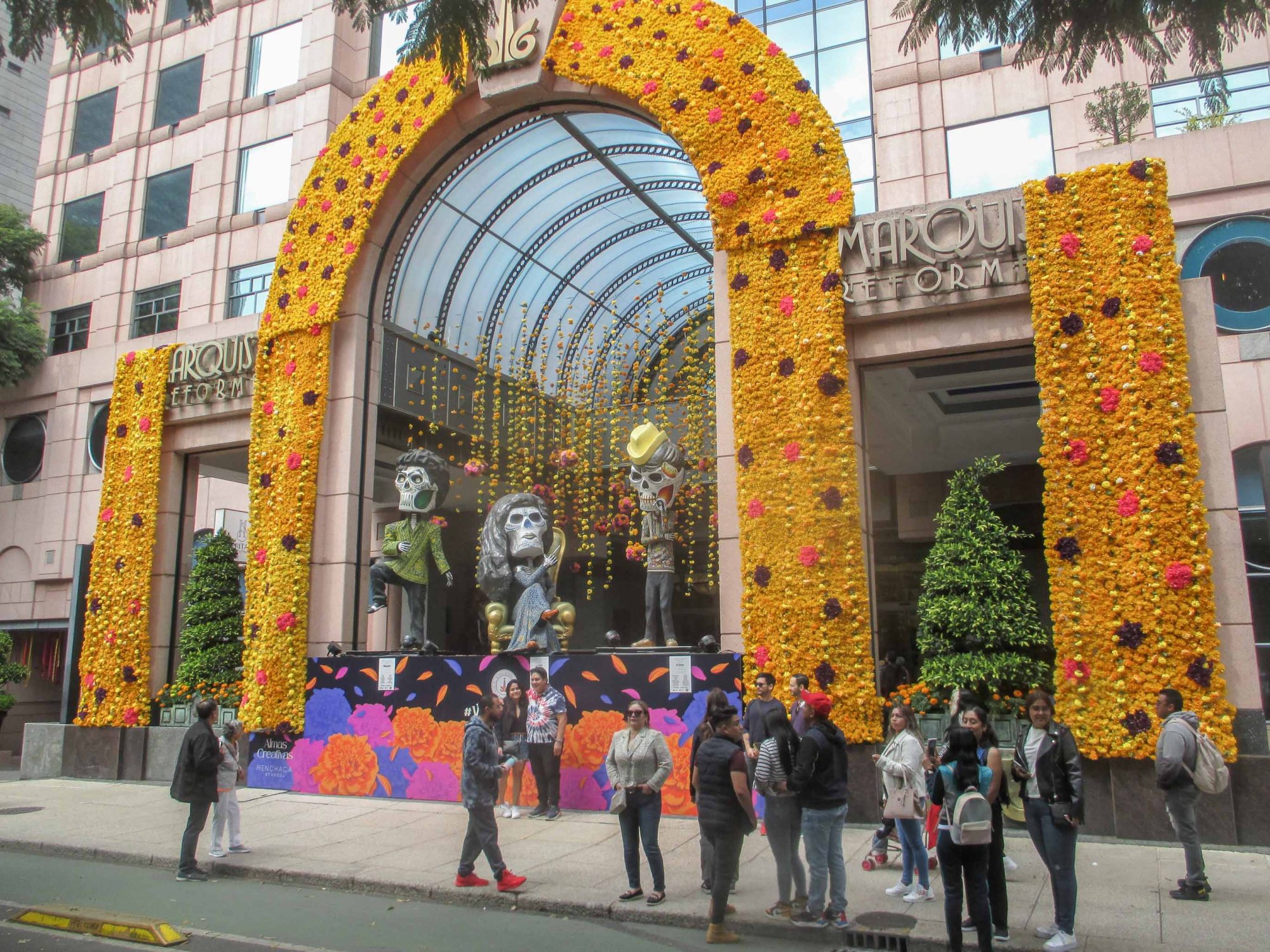 Ahí andaba en la Avenida Reforma en la Ciudad de México entre cantidades de personas que pululaban por todos lados, estaba viendo los alebrijes, esos híbridos de animales y seres fantásticos, cuando del otro lado de la calle se observaba una pared muy pero muy amarilla, indiscutiblemente el color que nos dice y nos acerca a este festejo del Día de Muertos.