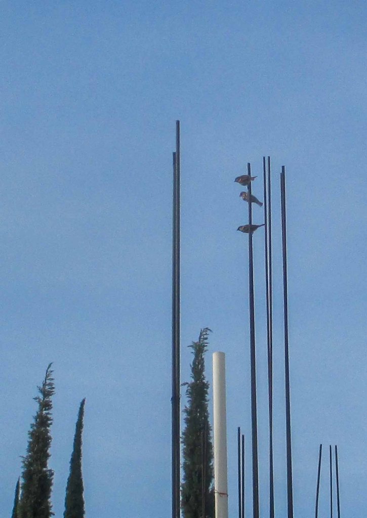La luz se mostraba tímida aflorando en un firmamento que se iba mostrando abierto, hasta que al ratito nomás, el trío alado de los cantores aparecieron y desde las varillas del techo daban su concierto de agradecimiento a ese día que tan esplendoroso había amanecido.
