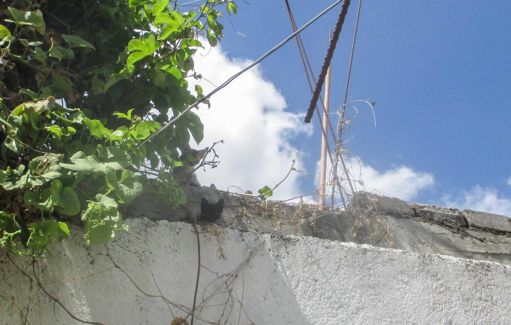Los días pasaron y los maulladitos se fueron convirtiendo en miradas ocultas entre las ramas de las enredaderas que crecían felices, cuando en cierta forma ya habían desistido de ello y secaban por falta del baño líquido que necesitaban.