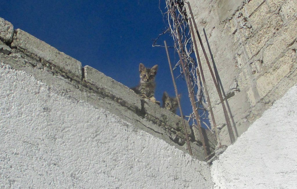Cuando un día, sin esperarlo de atrás del muro lindero una cabecita asomó, era uno de los gatitos, me quedó viendo con la misma intriga que yo lo observaba a él, mi boca abierta sorprendida de ver al de la mirada que me perseguía.