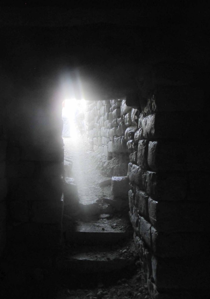Ahí sentada en ese nicho, solo absorbía esa trasmisión sin palabras, en la negrura total, la luz no estaba, una sensación de paz profunda me fue poseyendo, a medida que una aceptación total nunca vivida con tal profundidad se iba haciendo cargo de mí, ese sentimiento ancestral a ella, que puede ser la base de muchas fobias, ese miedo al cambio o el sentir que no se ha cumplido con el destino propio, que la existencia es vacía o el no estar viviendo, estar muerto en vida y ver que la hora llega.
