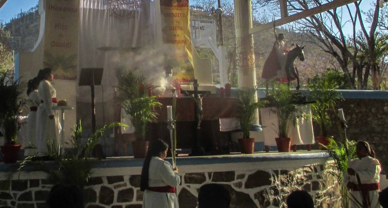 Así con un paso ceremonioso y reverente lleno de júbilo y esplendor con sus palmas en las manos fueron entrando por ese camino de los apósteles en el atrio abierto de la Iglesia.